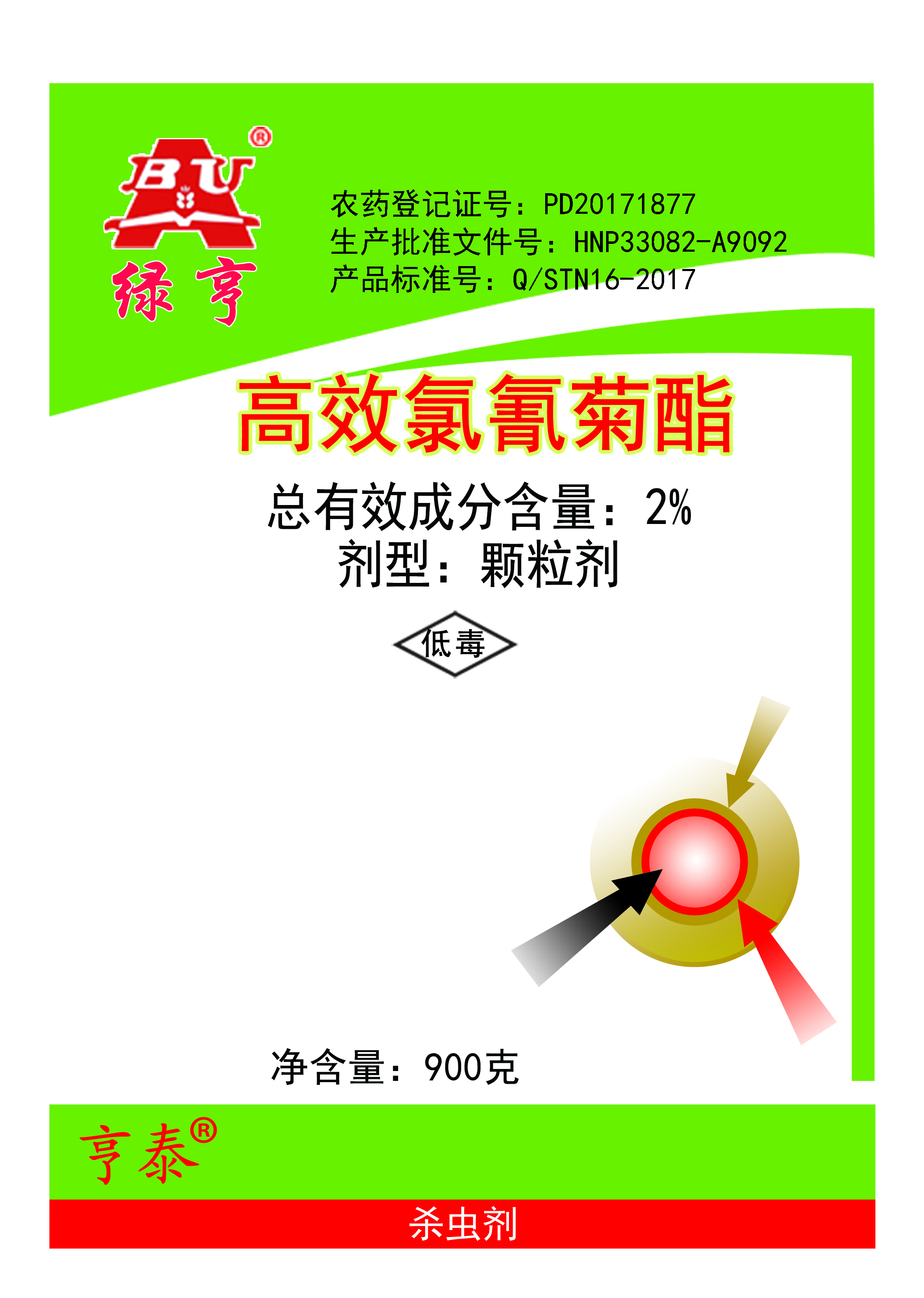 產(chǎn)品名稱: 亨泰?(2%高效氯氰菊酯顆粒劑)